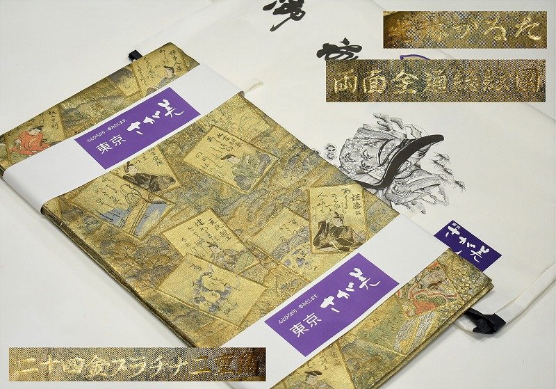 石川県加賀市のお客様に出張買取にてご依頼頂き、光琳かるた 両面全通総絵図 二十四金プラチナ二重箔 袋帯を買取りさせて頂きました。