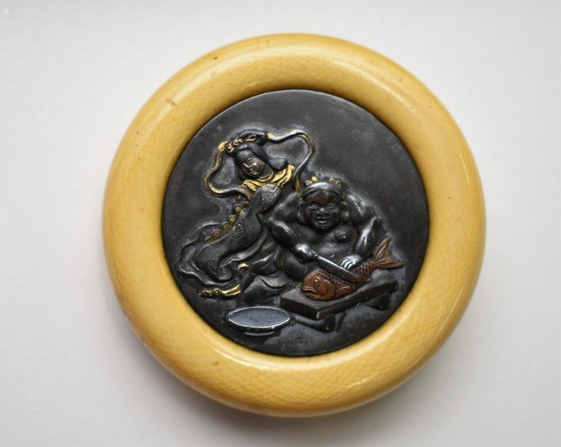 石川県白山市のお客様に出張買取にてご依頼頂き、時代 提物 細密彫刻 高肉象嵌 弁財天 恵比寿天 饅頭根付を買取りさせて頂きました。