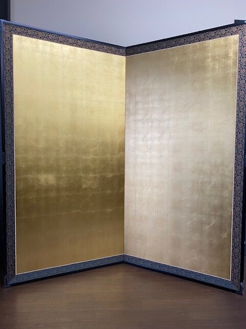 石川県白山市のお客様に出張買取にてご依頼頂き、本金二枚折 二曲半双 本金屏風を買取りさせていただきました。