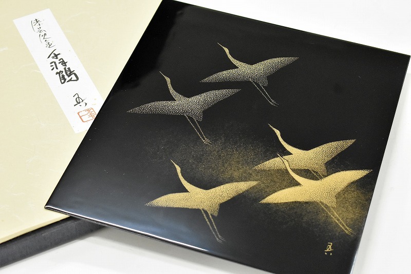 石川県輪島市の出張買取にてご依頼を頂き、輪島塗 巨匠 文化功労者 三谷吾一 千羽鶴 沈金 漆板を買取りさせていただきました。