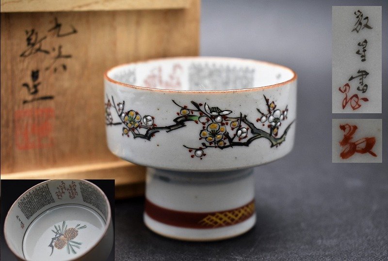 未使用品。共箱あり。 懐石道具酒盃 高台盃 九谷焼買取 アンティーク買取 古道具買取