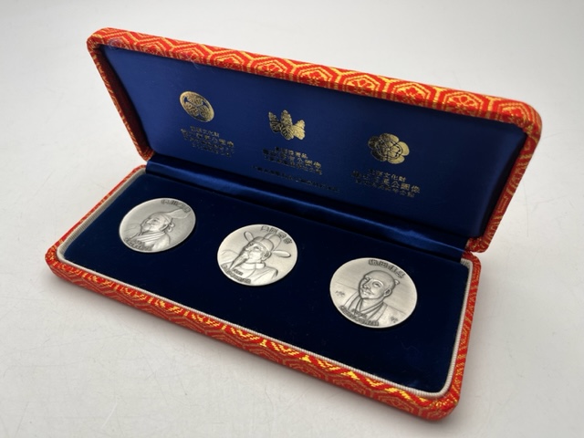 石川県金沢市のお客様に店頭買取にてご来店頂き、純銀御家宝 武将英傑三雄 徳川家康 豊臣秀吉 織田信長 純銀メダルを買取りさせて頂きました。