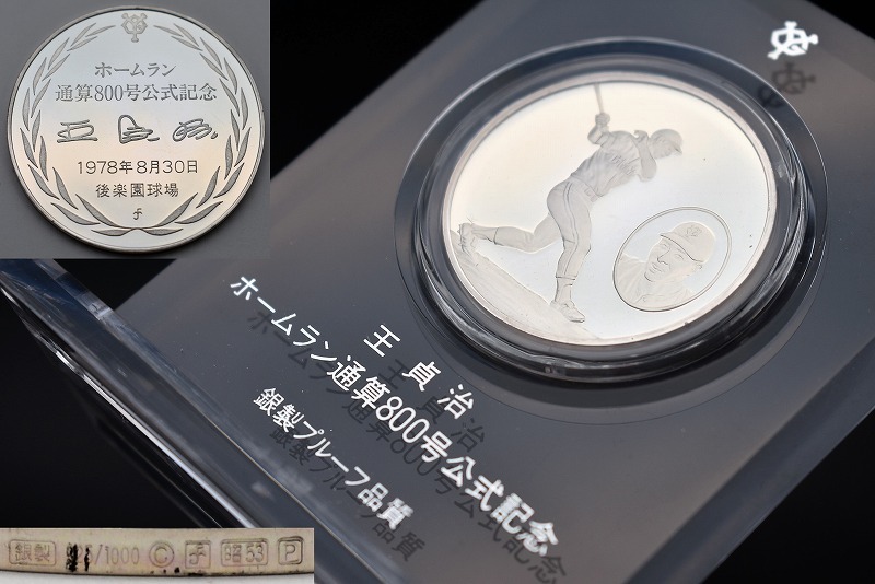 石川県金沢市のお客様に出張買取にてご依頼頂き、銀製 ジャイアンツ 王貞治 ホームラン通算800号公式記念 メダルを買取りさせていただきました。
