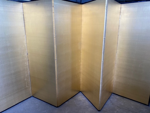 【福井県大野市】のお客様より◆六曲一双 絹目無地本金屏風◆をお買取り。