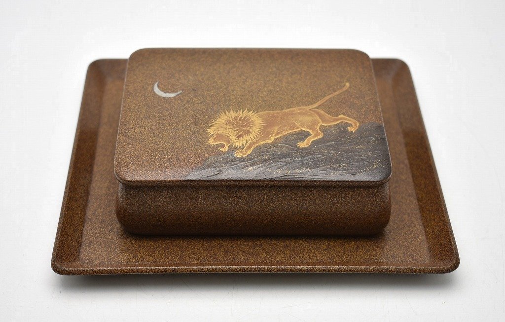 石川県小松市のお客様に出張買取にてご依頼頂き、時代 喫煙道具 月下獅子図 高蒔絵 煙草盆 巻莨入 煙草入 小箱を買取りさせて頂きました。