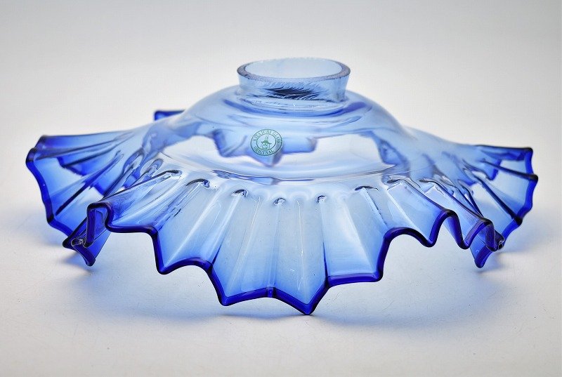 石川県金沢市のお客様に出張買取にてご依頼頂き、アンティーク 昭和レトロ 北一硝子 フリル縁 青色 ガラス シェードを買取りさせて頂きました。