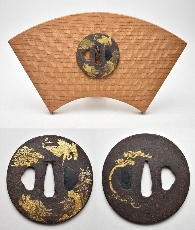 福井県福井市のお客様に出張買取にてご依頼頂き、時代 刀装具 鉄地 鶴亀金象嵌 丸形 鉄鍔 鐡鍔を買取りさせて頂きました。