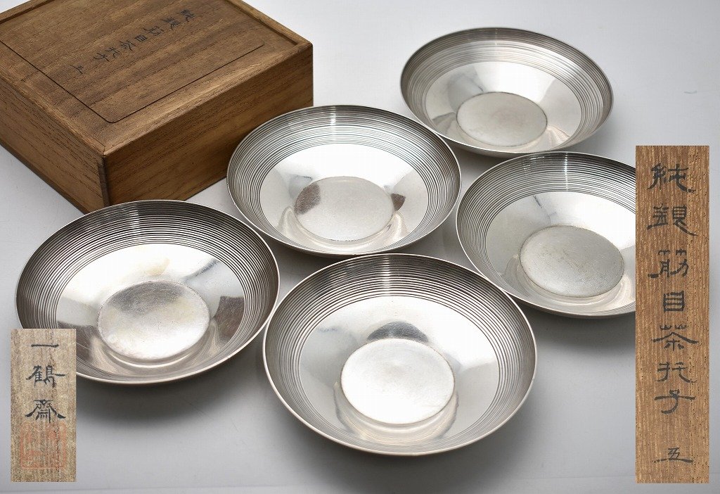 福井県福井市のお客様に出張買取にてご依頼頂き、金工師 一鶴齋造 純銀 筋目茶托子を買取りさせて頂きました。