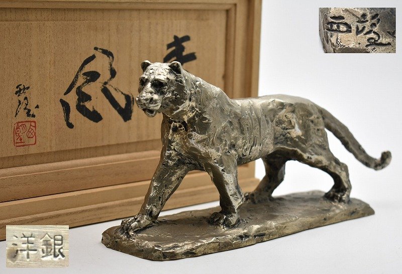 福井県福井市のお客様に出張買取にてご依頼頂き、文化勲章受章作家 彫塑家 北村西望 ブロンズ像 青風 虎 置物を買取りさせて頂きました。