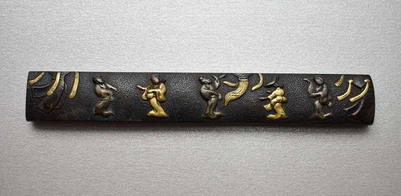福井県福井市のお客様に出張買取にてご依頼頂き、時代物 刀装具 拵え  盛象嵌 踊子図 人物図 小柄を買取りさせて頂きました。