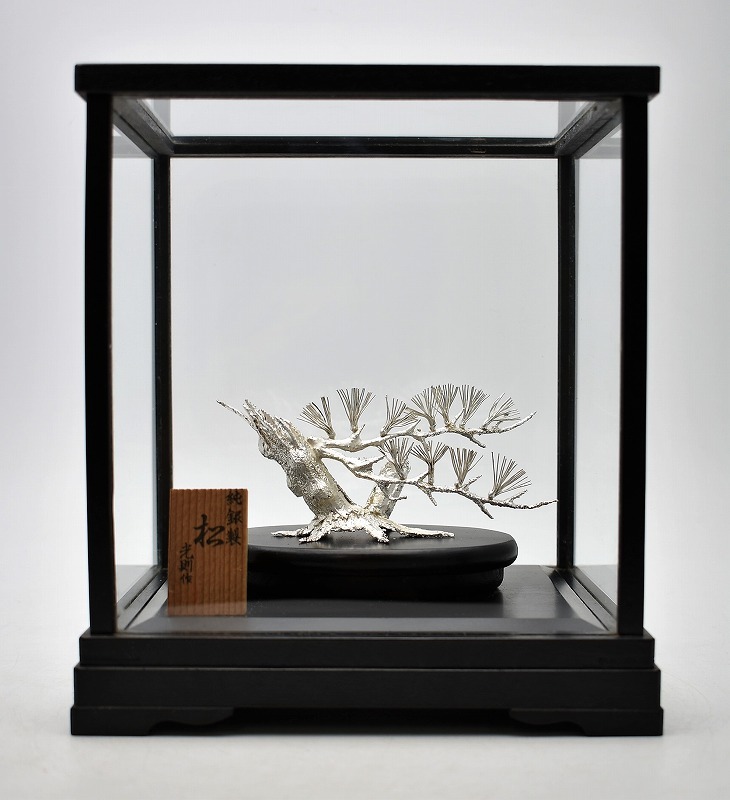 骨董品買取【福井県あわら市】のお客様より◆金工作家 光則作 大淵武則 純銀製 松 細密細工 置物◆をお買取り。