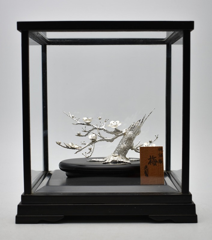 銀製品買取【福井県あわら市】のお客様より◆金工作家 光則作 大淵武則 純銀製 梅 細密細工 置物◆をお買取り。