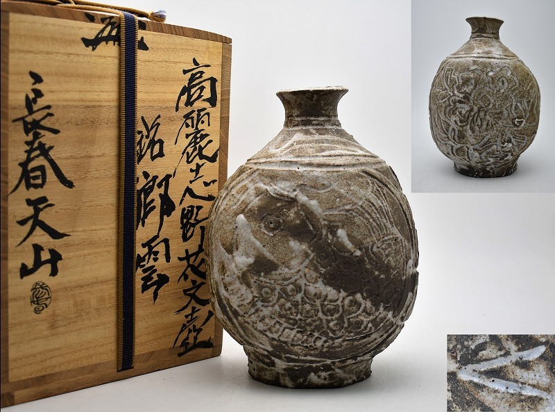 古美術買取【石川県加賀市】のお客様より◆長春天山 花押「銘 郷雲」高麗志野花文壷◆をお買取り。