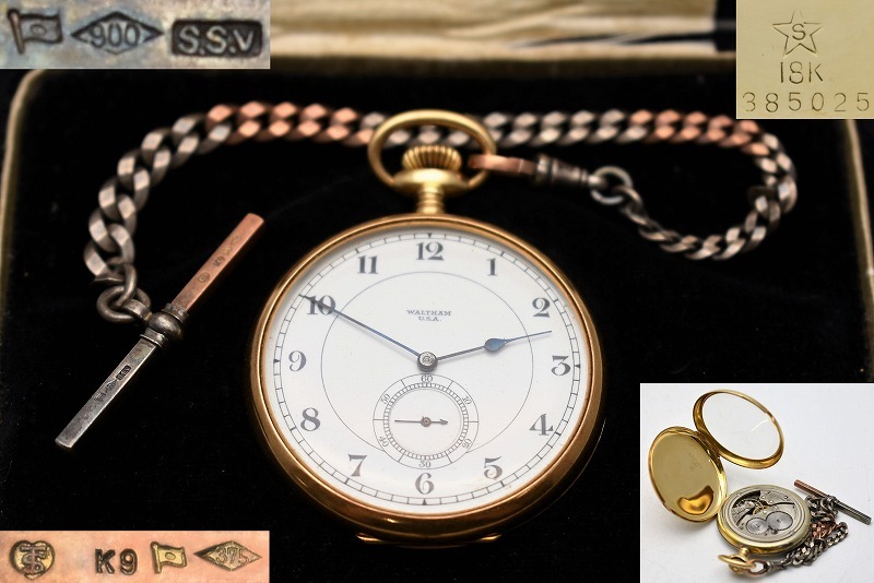 富山県高岡市のお客様に出張買取にてご依頼頂き、希少 アンティーク WALTHAM USA ウォルサム 18K 金ケース 手巻き 懐中時計を買取りさせていただきました。
