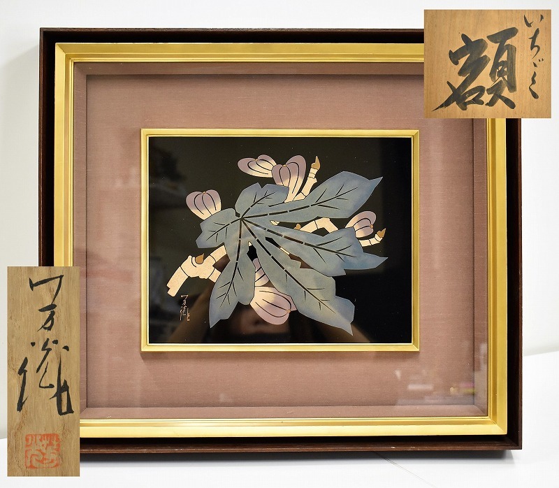 石川県金沢市のお客様より店舗買取にてご来店頂き、石川県指定無形文化財 名工 小松芳光 いちじく 無花果蒔絵 漆額を買取りさせていただきました。