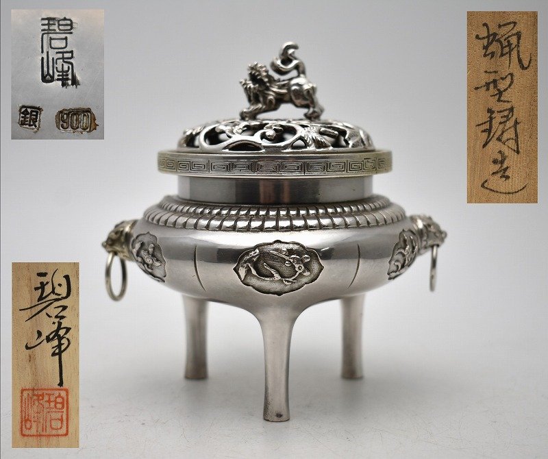 銀製品買取 銀製品買取富山県富山市◆鋳金家 銀製 900 碧峰 蝋型鋳造 遊環付獣耳 獅子香炉 銀香炉◆をお買取り。富山県富山市のお客様に出張買取にてご依頼頂き、鋳金家 銀製 900 碧峰 蝋型鋳造 遊環付獣耳 獅子香炉 銀香炉を買取りさせて頂きました。 高12.5cm 約697g 共箱あり。 高岡銅器買取 石川県 福井県 九谷焼買取 骨董品買取 茶道具買取 アンティーク買取 古道具買取