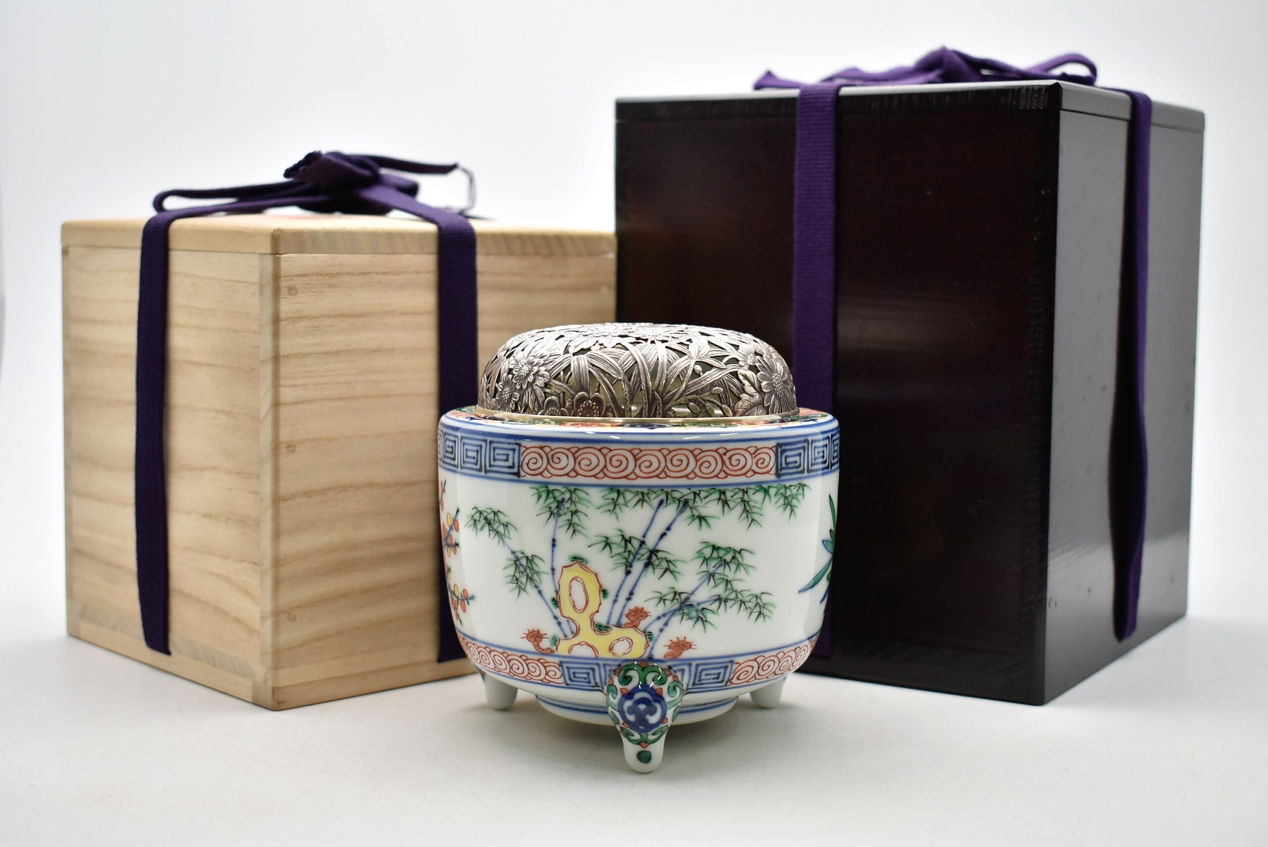 中国美術買取【福井県福井市】のお客様より◆三浦竹泉造 四君子純銀火屋香炉◆をお買取り。