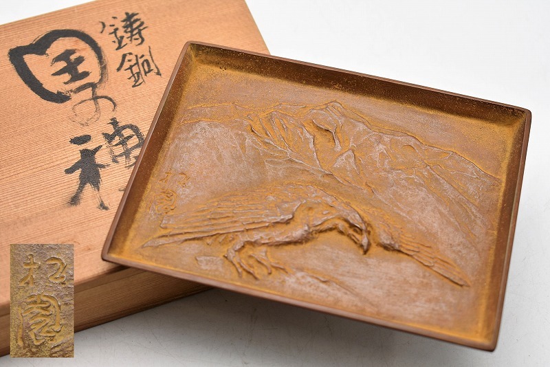 未使用品。共箱あり。銅板 レリーフ 人間国宝作品買取り