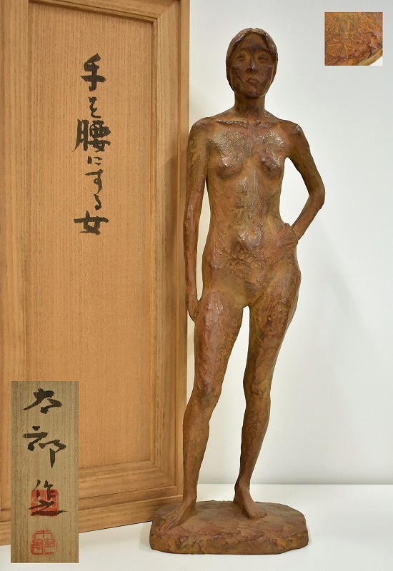石川県金沢市のお客様より出張買取にてご依頼頂き、彫刻家 田中太郎 昭和58年 手を腰にする女 銅像 置物を買取りさせていただきました。