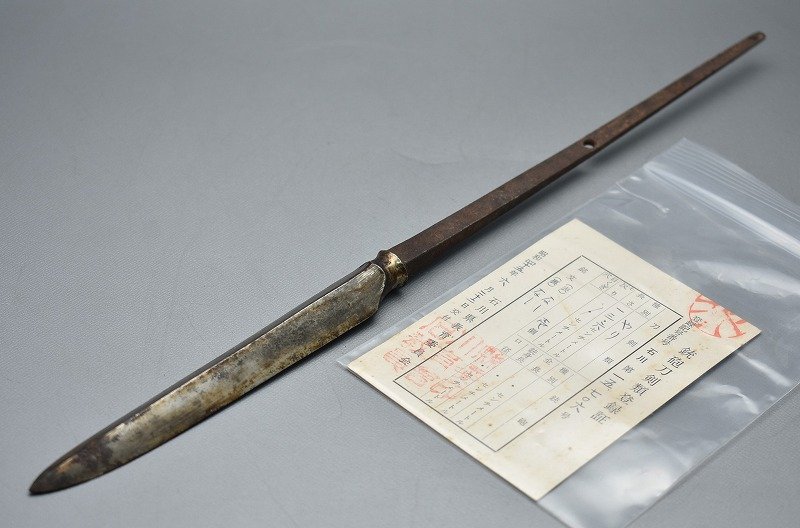 福井県福井市のお客様に出張買取にてご依頼頂き、登録証有り 時代 武具 鉄地 槍を買取りさせて頂きました。