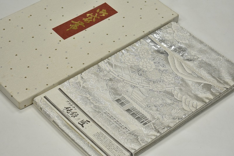 石川県宝達志水町のお客様より出張買取にてご依頼を頂き、京都 織元 プラチナと純銀乃匠 純度99.9% 純銀蒸着加工 袋帯 着物帯を買取りさせていただきました。