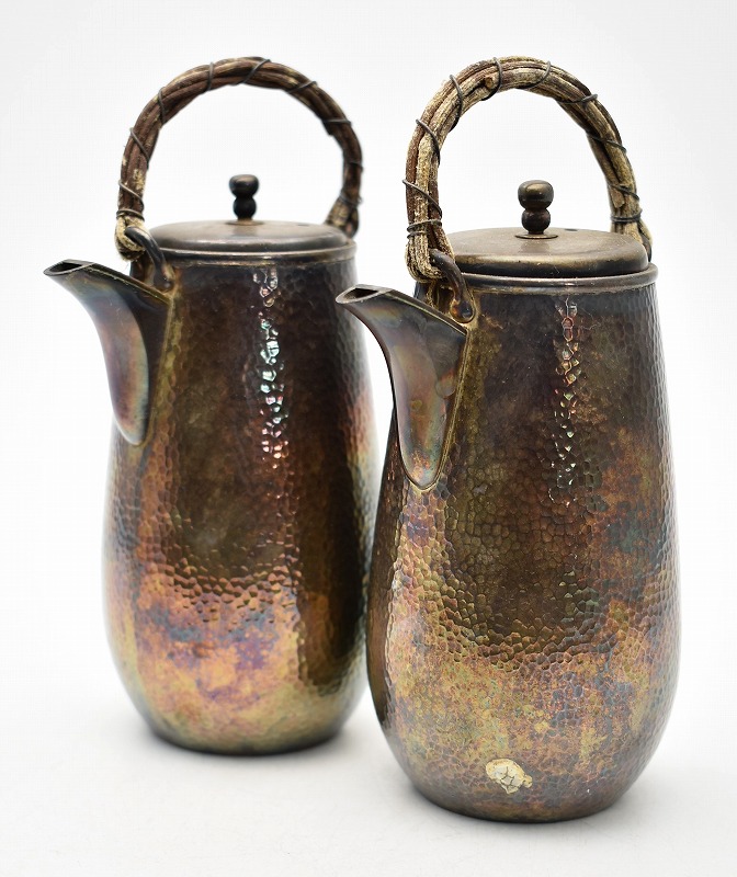 古道具買取【福井県福井市】のお客様より◆純銀製 鎚目 酒器 銚釐 ちろり一対◆をお買取り。