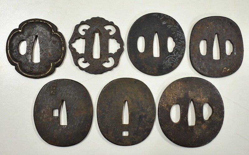 銀製品買取【福井県越前市】のお客様より◆時代 刀装具 刀鍔 鉄鍔 山城國伏見住金家 象嵌 透かし 木瓜形 丸形 等◆をお買取り。