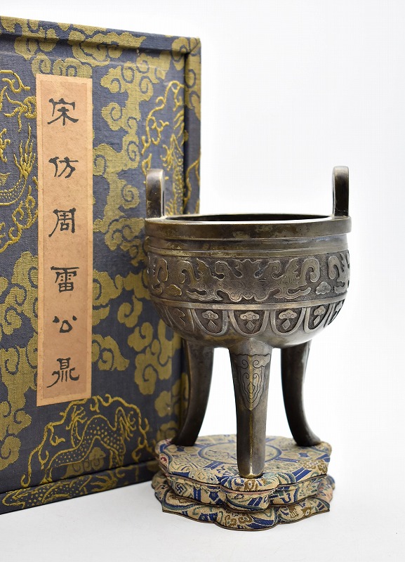 福井県福井市のお客様に出張買取にてご依頼頂き、中国美術 饕餮紋古代銅香炉 宋仿周雷公鼎を買取りさせて頂きました。