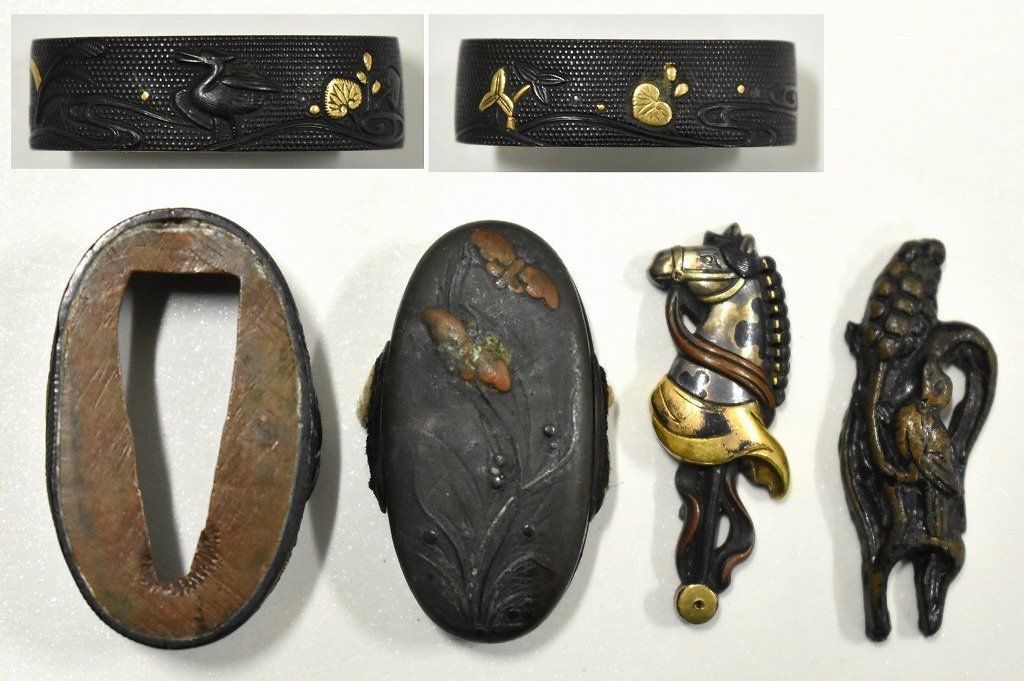 骨董品買取福井県鯖江市◆時代 刀装具 武具 拵え 縁 頭 目貫 花鳥象嵌 蝶象嵌 馬図 鳥図◆をお買取り。