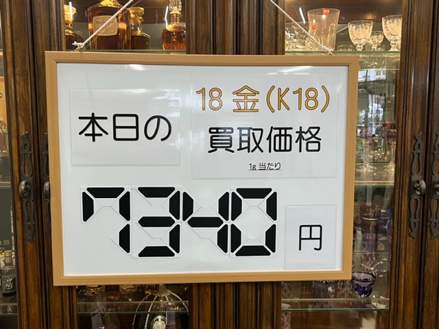 本日の【18金(K18)】1g当たりの店頭買取価格です。
