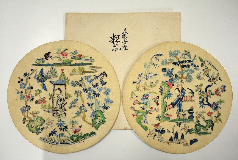 福井県坂井市のお客様に出張買取にてご依頼頂き、中国美術 支那土産 刺繍画 円窓 美人図刺繍絵を買取りさせて頂きました。