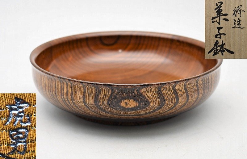古道具買取【石川県小松市】のお客様より◆山中漆器 中嶋虎男 木製 欅造 菓子鉢◆をお買取り。