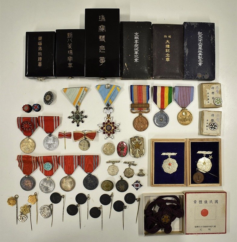 石川県白山市のお客様に出張買取にてご依頼頂き、当時物 旧日本軍 徽章 勲章 まとめて 瑞宝単光章 昭和大禮記念章 勲八等瑞宝章 支那事変従軍記章 国民儀禮章 大日本武徳会 略綬を買取りさせて頂きました。 勲章記章買取 アンティーク買取 古道具買取