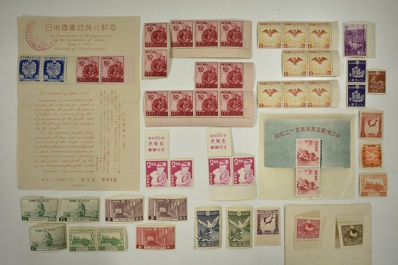 古道具買取【石川県金沢市】のお客様より◆日本切手 記念切手 古切手 まとめて 帝国議会議事堂竣功記念 日本国憲法施行記念◆をお買取り。