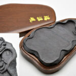堆朱盆漆を塗り重ねた厚い層を彫刻して文様を表わす技法を「彫漆」と読んでいます。中国の堆朱の工芸品は唐物とよばれて珍重され日本に輸入されました。こちらの堆朱は日本茶道具として茶入の盆として活用されました。布袋様の周り従者がいる珍しい構成です。とても良いお品です。