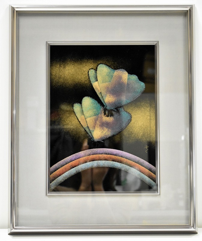 九谷焼・輪島塗 古道具・骨董・古美術 屏風・掛け軸・書・絵画 輪島塗買取【石川県七尾市】のお客様より◆輪島塗 巨匠 文化功労者 三谷吾一 虹に蝶 沈金 漆額◆をお買取り。