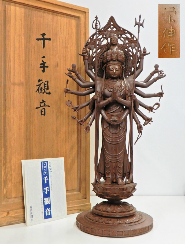 富山県高岡市のお客様より出張買取にてご依頼頂き、江戸仏師 先崎栄伸原型 ブロンズ 千手観音 銅像 観音立像を買取りさせていただきました。