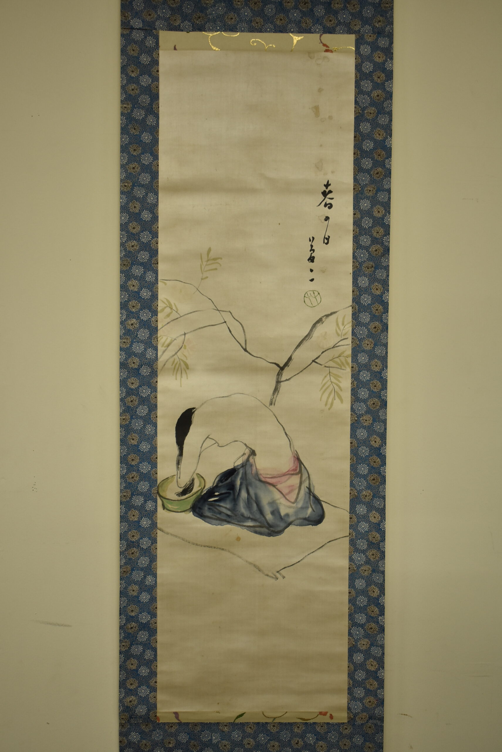 掛け軸買取 絵画買取石川県七尾市のお客様より◆日本画 竹久夢二 画 「春の日」 夢二式美人画◆をお買取り。