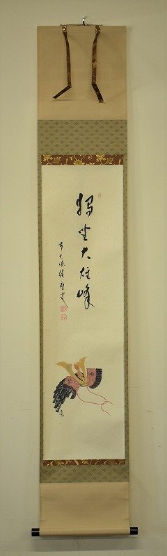 掛け軸買取 書買取福井県坂井市◆前大徳寺 福本積應 一行書 独坐大雄峰 兜の画 掛軸◆をお買取り。