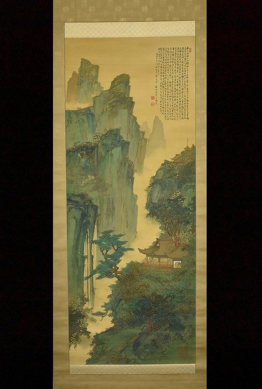 石川県白山市のお客様に出張買取にてご依頼頂き、展覧会出品作品 真作 掛軸 石川県 画家 梶野玄山 蓬莱山水図を買取りさせて頂きました。