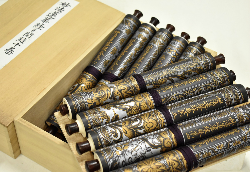 福井県福井市のお客様より出張買取にてご依頼頂き、工藝印刷 巻物 妙法蓮華経並開結 十巻 立正佼成会 妙法蓮華経 無量義経 観普賢経を買取りさせていただきました。