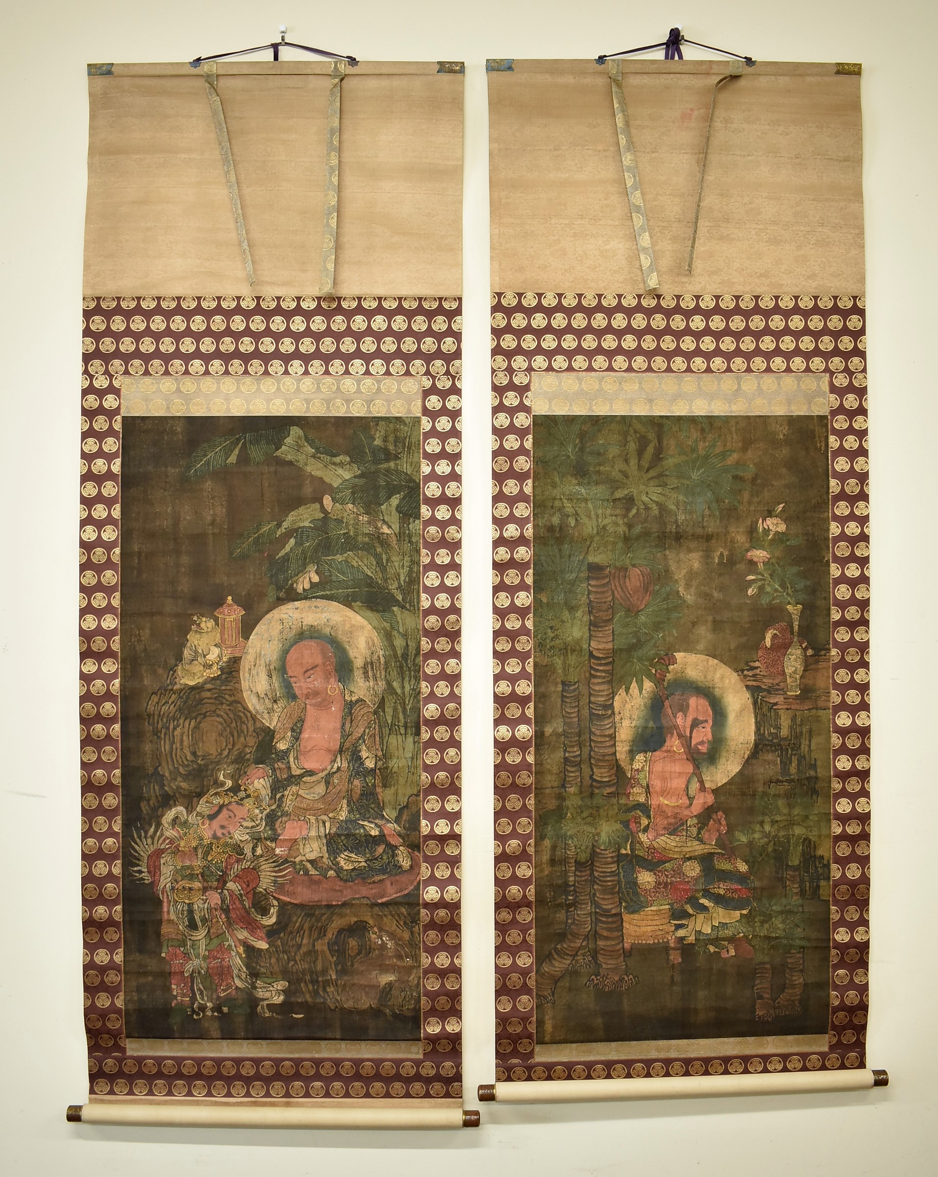 古美術買取 掛け軸買取【福井県福井市】のお客様より◆古画 室町期画僧 吉山 明兆(兆殿主/兆典司)十六羅漢図内二幅◆をお買取り。
