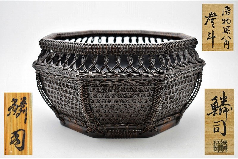 古道具買取 茶道具買取 古道具買取 茶道具買取【石川県金沢市】のお客様より◆籠師 和田鱗司 唐物写 八角 炭斗 炭取◆をお買取り。石川県金沢市のお客様に出張買取にてご依頼頂き、籠師 和田鱗司 唐物写 八角 炭斗 炭取 竹籠を買取りさせて頂きました。 共箱あり。 竹編細工 茶道具 煎茶道具 炭道具 茶道具買取 アンティーク買取 古道具買取