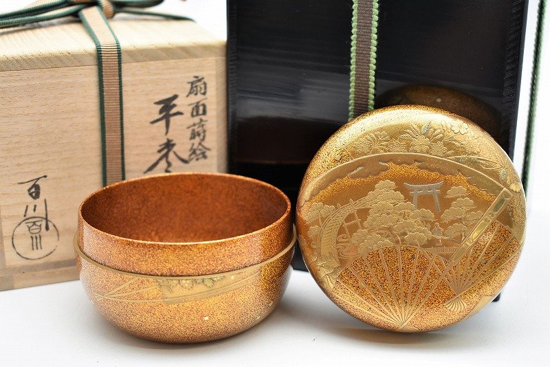 茶道具買取 骨董品買取 茶道具買取 骨董品買取【石川県美川市】のお客様より◆村田百川作 扇面蒔絵 梨子地 平棗◆をお買取り。石川県美川市のお客様に出張買取にてご依頼頂き、村田百川作 扇面蒔絵 梨子地 平棗を買取りさせて頂きました。 二重箱 加賀蒔絵 城端蒔絵 茶道具買取 アンティーク買取 古道具買取
