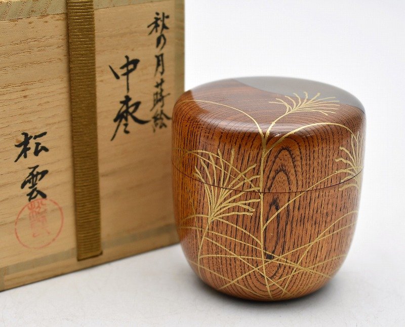 茶道具買取 輪島塗買取 茶道具買取 輪島塗買取【石川県七尾市】のお客様より◆加賀蒔絵師 西村松雲 秋の月蒔絵 中棗◆をお買取り。石川県七尾市のお客様に出張買取にてご依頼頂き、加賀蒔絵師 西村松雲 秋の月蒔絵 中棗を買取りさせて頂きました。 共箱あり。加賀蒔絵買取 茶道具買取 アンティーク買取 古道具買取