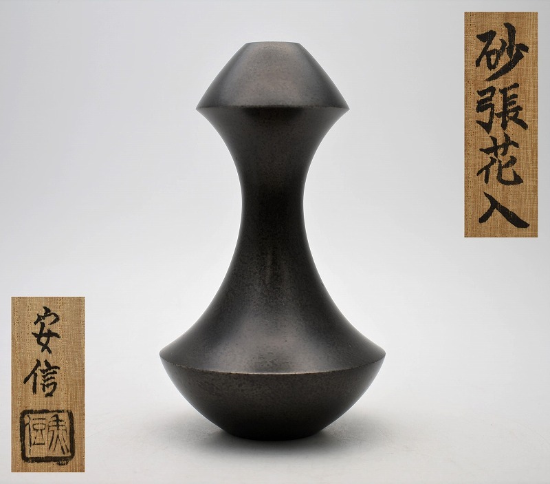 茶道具買取 骨董品買取 茶道具買取 骨董品買取【石川県小松市】のお客様より◆金工師 魚住安信 砂張花入 花器◆をお買取り。石川県小松市のお客様に出張買取にてご依頼頂き、金工師 魚住安信 砂張花入 花器を買取りさせていただきました。 高18.3cm 約625g 共箱あり。花瓶 花生 煎茶道具 華道具 師:人間国宝 三代 魚住為楽