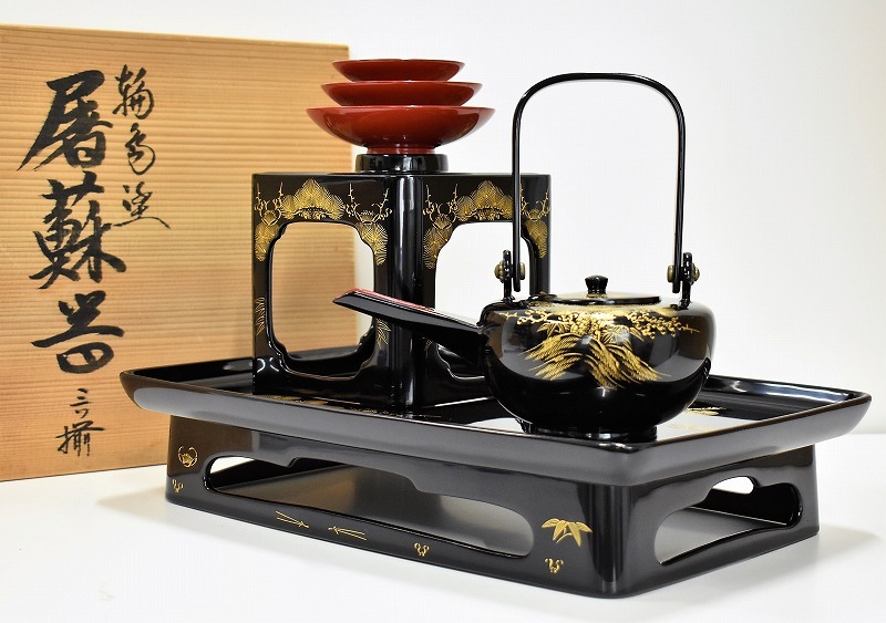 古道具買取 茶道具買取 輪島塗買取 骨董品買取【石川県かほく市】のお客様より◆輪島塗 極上本堅地 鶴亀松竹梅 沈金 屠蘇器◆をお買取り。