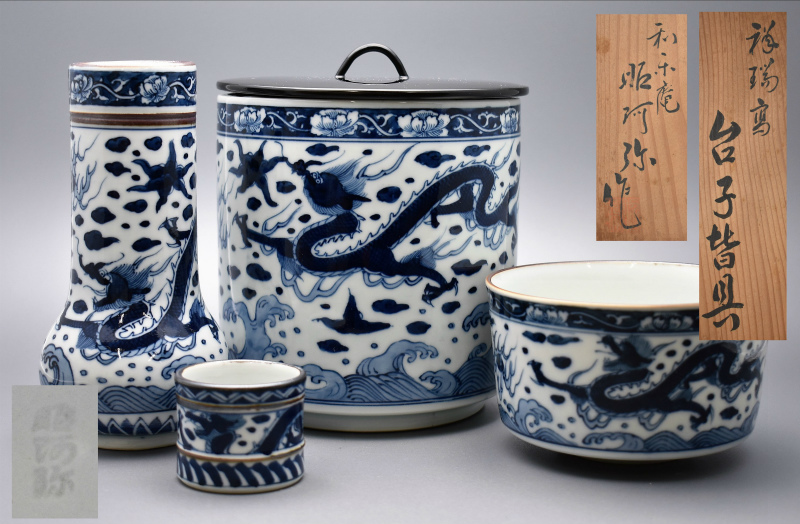 石川県金沢市のお客様より出張買取にてご依頼頂き、京焼 高野昭阿弥 祥瑞写 台子皆具 水指 建水 杓立 蓋置 塗蓋を買取りさせていただきました。
