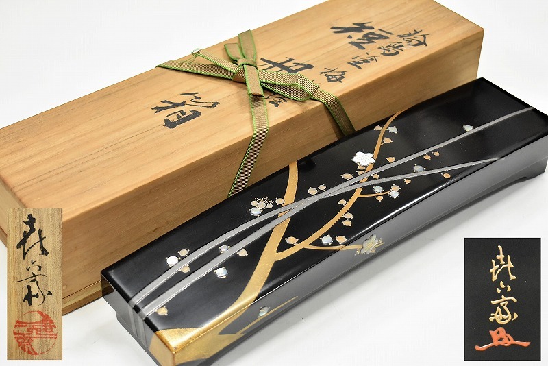 九谷焼・輪島塗 古美術買取 古道具・骨董・古美術 古道具買取 屏風・掛け軸・書・絵画 煎茶道具買取 茶道具 茶道具買取 輪島塗買取 骨董品買取【石川県輪島市】のお客様より◆輪島塗の名工 井波喜六斉 梅蒔絵 短冊筥 短冊箱◆をお買取り。
