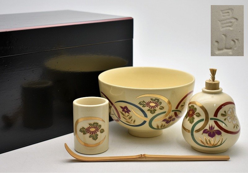 福井県あわら市のお客様に出張買取にてご依頼頂き、茶道具 面朱黒 昌山銘 茶碗 振出 茶巾筒 茶杓 野点茶箱を買取りさせて頂きました。